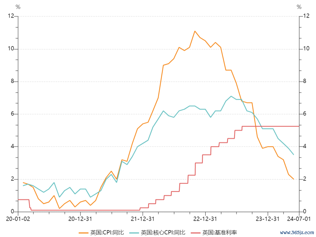 但英国通胀居高不下导致英国央行迟迟不能降息,则引发了众多批评。数据显示,英国物价涨幅自2021年超过2%后,一致持续高位。直到今年才开始持续回落。但英国央行却迟迟未能降息。目前,英国基准利率仍然维持在5.25%的高位。