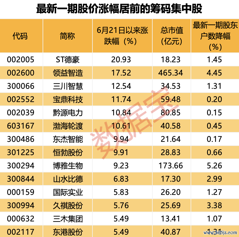 最新一期筹码集中股出炉