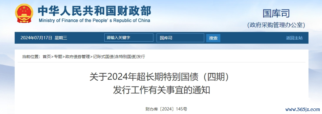 关于2024年超长期特别国债(四期)发行工作有关事宜的通知