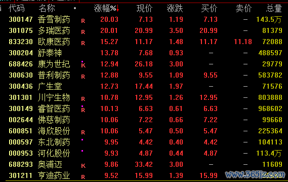 医药板块拉升