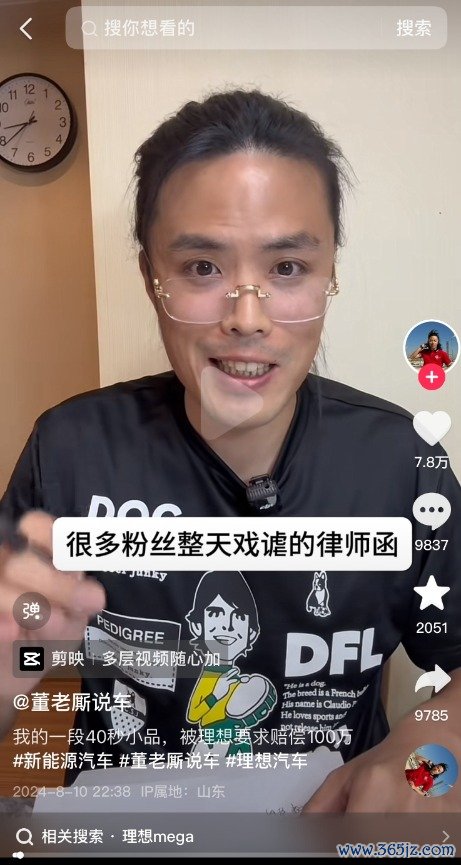 此次纠纷的源头,可追溯至今年3月。“董老厮说车”在抖音平台上发布了一段翻拍电影《疯狂的赛车》桥段的45秒短视频,其在抖音上获赞超5.9万,评论超过1.8万条。尽管该视频在发布一天内被下架,但理想汽车方面认为,该视频对其MEGA车型造成了负面影响,导致其销量下滑。