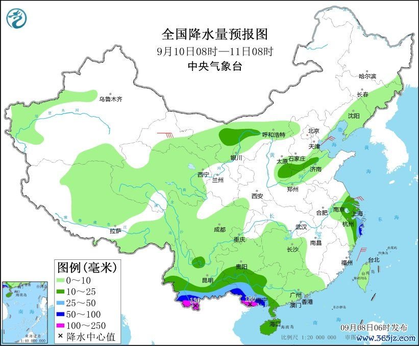 全国降水量预报图(9月10日08时-11日08时)线下配资