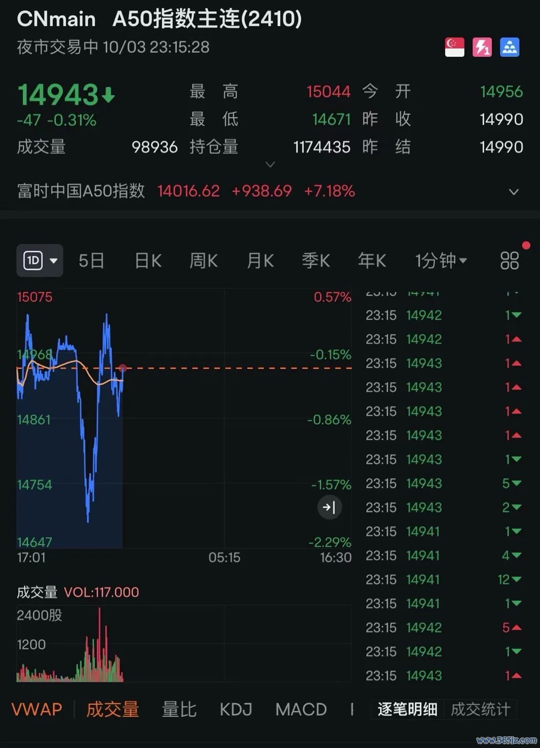 富时中国A50指数期货一度跳水,跌破14900.00关口股票网络配资,截至记者发稿,跌幅收窄,最新报14943.00,日内跌0.31%。